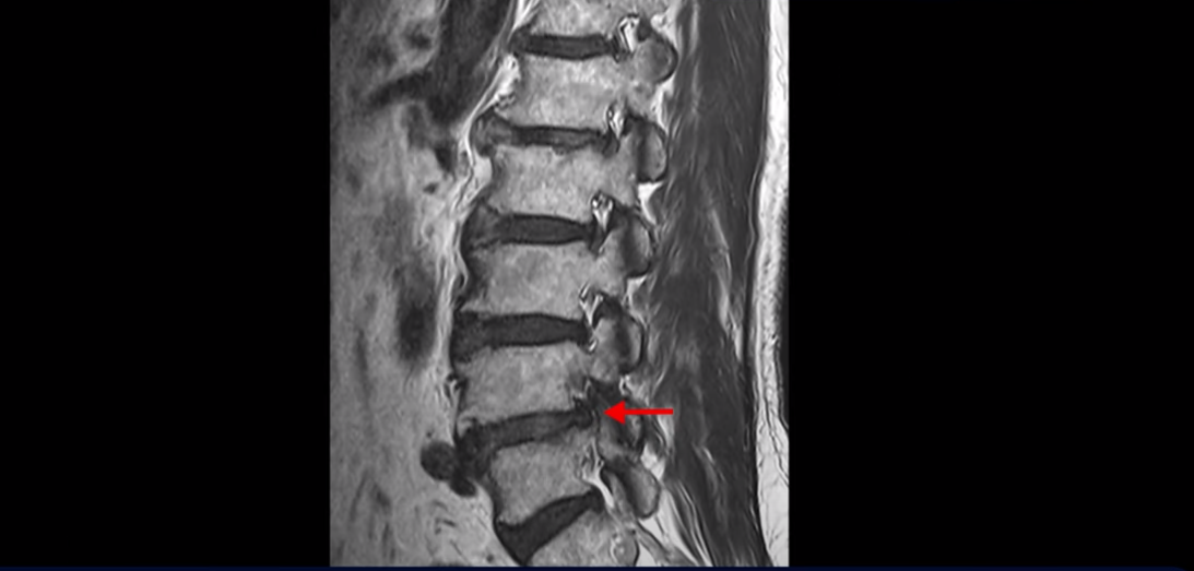 이분 MRI를 보면 척추의 여러 마디가 퇴행이 진행되어 안 좋습니다.