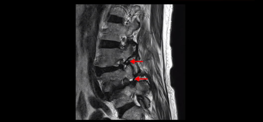 MRI상 전방전위가 있지만 무증상 전방전위였다가 갑자기 무리한 일과 운동으로 허리 근육의 기능이 떨어지면서 전방전위 증상이 발생한 사례